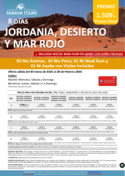 Aventuras de Wadi Rum. 8 días / 7 noches. Salidas diarias excepto lunes desde MAD desde 1.271 €