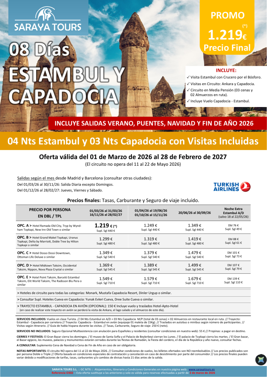 Estambul y Capadocia 8 días: Circuito con Visitas Incluidas salidas hasta Febrero 2027